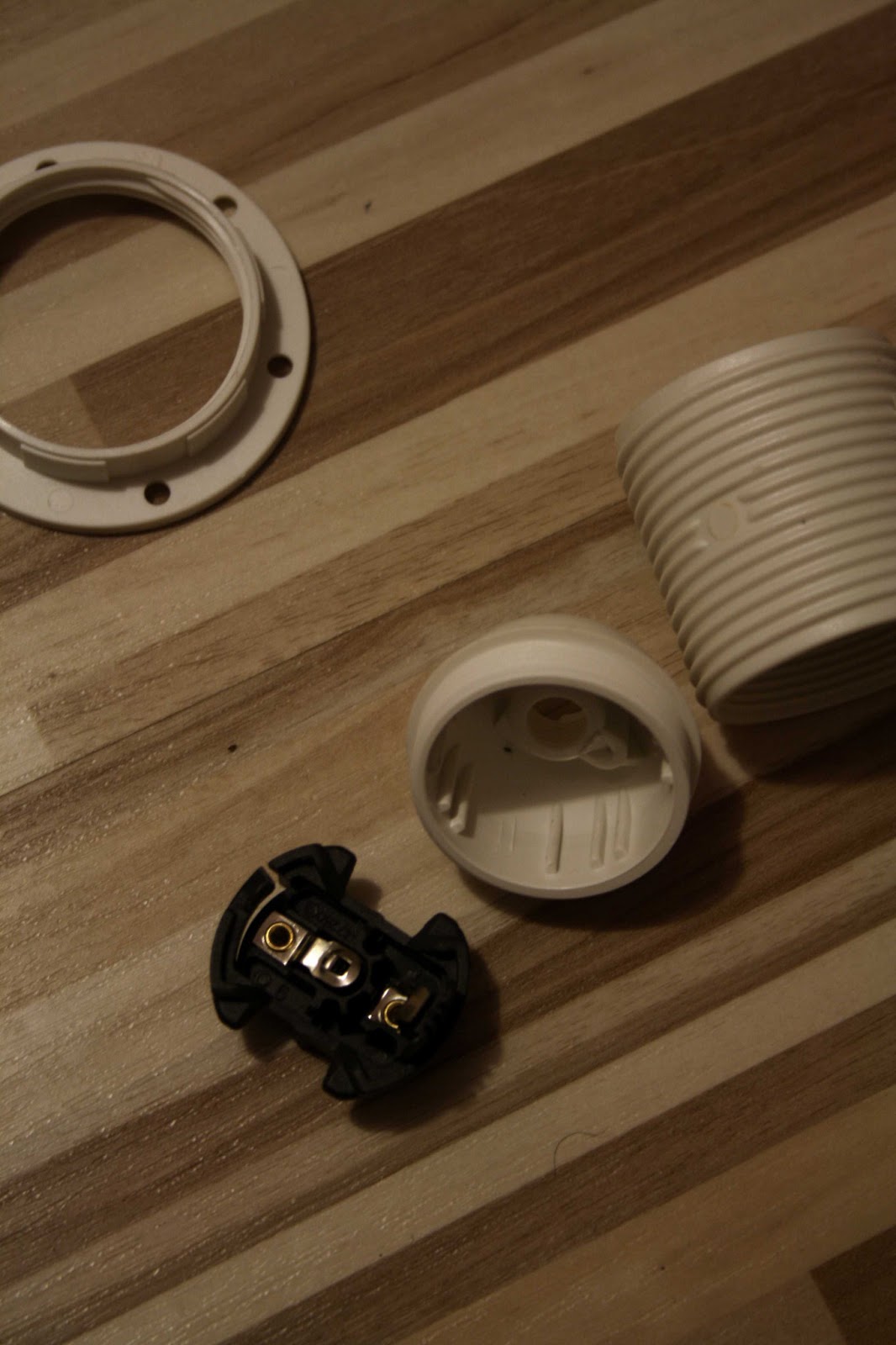 Villamossági üzletben vettem egy vezetéket, amin már rajta volt a villás dugó és a kapcsoló, valamint egy foglalatot, amin volt egy db ernyő rögzítő tárcsa. Sosem értettem, miért csak egyet adnak hozzá, ha egy másik is kéne nekem, mondjuk,amivel rászorítom az ernyő peremét erre az elsőre, akkor ahhoz vennem kell egy másik komplett foglalatot is, 500 Ft-ért.