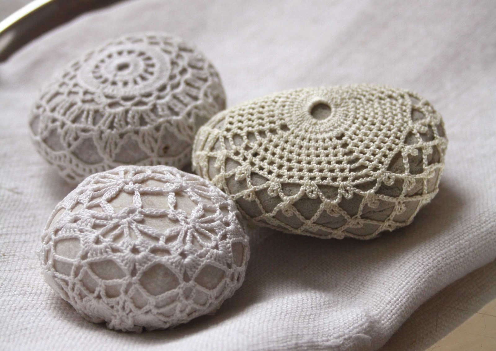 Volt pinterestes tervem, ezer éves, ez a kavics bevonás, de eddig nem volt olyan kavics, ami “méltó” lett volna rá. Ám ezeket a tenger formázta kavicsokat, köveket nem lehetett nem így megoldani… a svéd kövek a svéd lomison talált csipkébe burkolva.