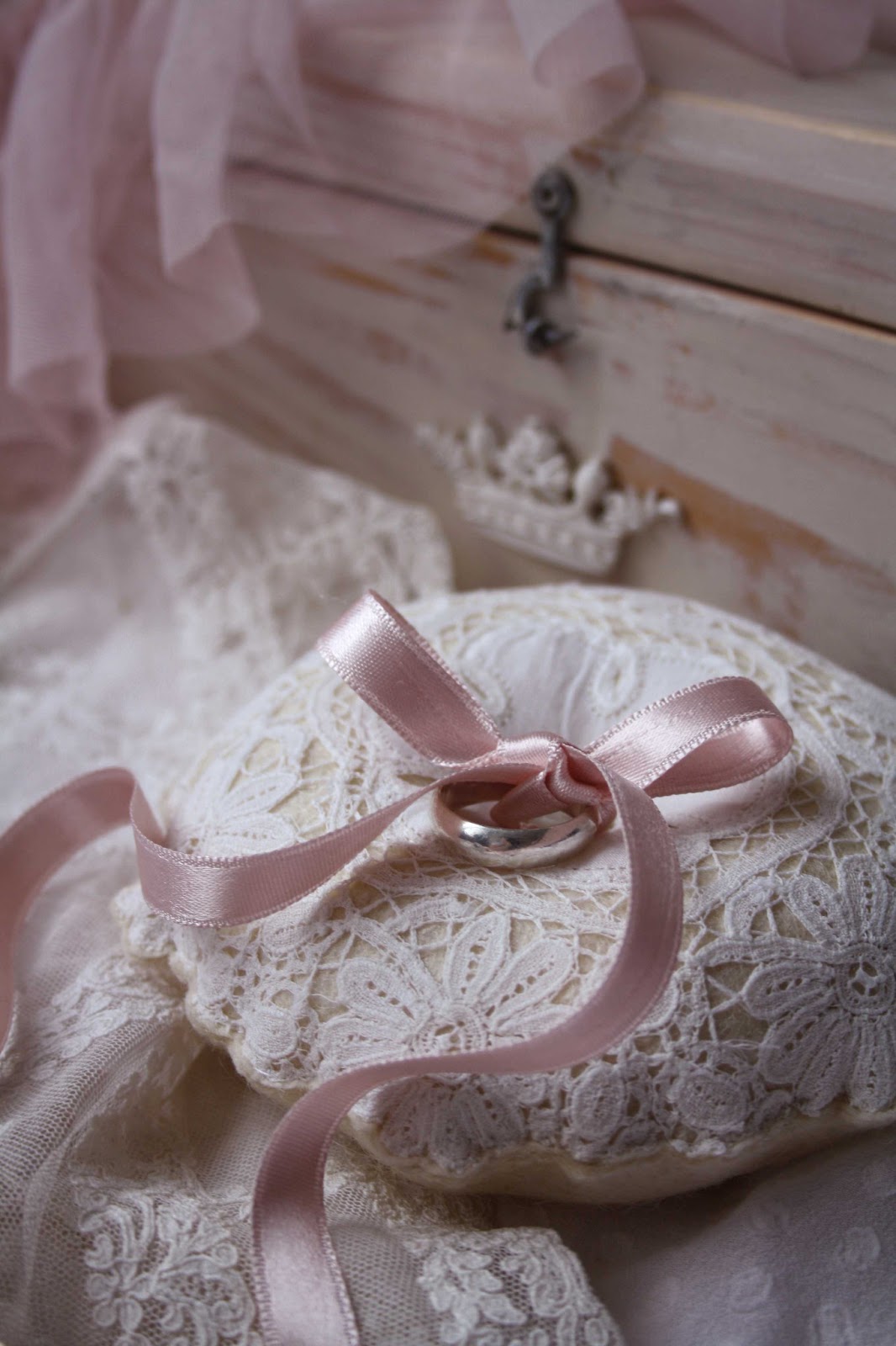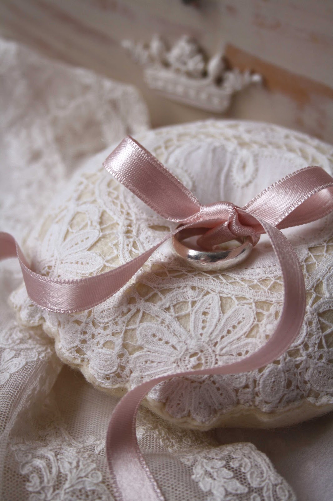 Gyűrűpárnát készíteni mindig öröm, akkor is, ha csak úgy találomra készül, anélkül, hogy ismerném a menyasszonyt és a vőlegényt. Mert így történt ezúttal is, mégis, amikor ez az anyag a kezembe került, akkor azonnal tudtam, hogy ebből gyűrűpárna kell, hogy legyen, semmi más.